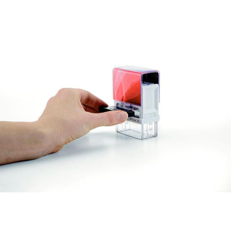 Штамп самонаборный Colop Printer 30-Set используется для самостоятельного создания и оперативного изменения текста оттиска. Компактный и надежный пластиковый корпус с автоматическим окрашиванием. На корпусе расположено большое информационное окно для корпоративной или личной персонализации. Прозрачное основание штампа позволяет точно размещать оттиски на документах. Штемпельная подушка легко заменяется. Оптимальный набор букв, цифр и символов с креплением на одной ножке, экспресс-набор текста. Размер поля — 47×18 мм, 5 строк. Максимальное количество знаков в каждой строке — 29 основным шрифтом или 22 большим шрифтом.Комплектация: штамп с рифленой пластиной для набора, две кассы букв — Type Set A и Type Set B, синяя сменная штемпельная подушка E/30, пинцет.