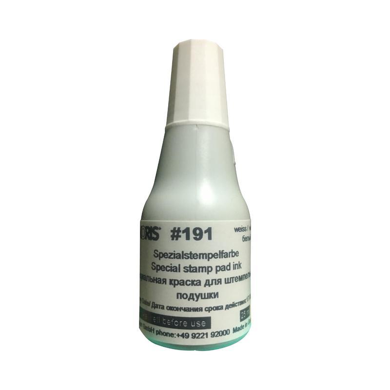 Специальная универсальная штемпельная краска на водной основе с содержанием спирта. Используется для нанесения на непористые поверхности (кроме полиэтилена, полипропилена): глянцевую бумагу, картон, олово, свинец, железо и т. д. Важно знать, что использование универсальных красок рекомендуется только с клише из высококачественной резины, так как под воздействием спиртов клише из некачественной резины и всех типов полимера теряет контуры, разрушается. Минимальный срок хранения 3 года. Для предотвращения преждевременного высыхания, экономии расхода рекомендуется использовать только штемпельные подушки со специальным слоем для спиртосодержащих красок (арт. 22321, 218953). Время высыхания: твердый пластик — 200 секунд, бумага обычная — 5 секунд, электроника — 240 секунд, дерево необработанное — 100 секунд, ткань — 240 секунд, металл — 300 секунд. Цвет — белый. Объем — 25 г.