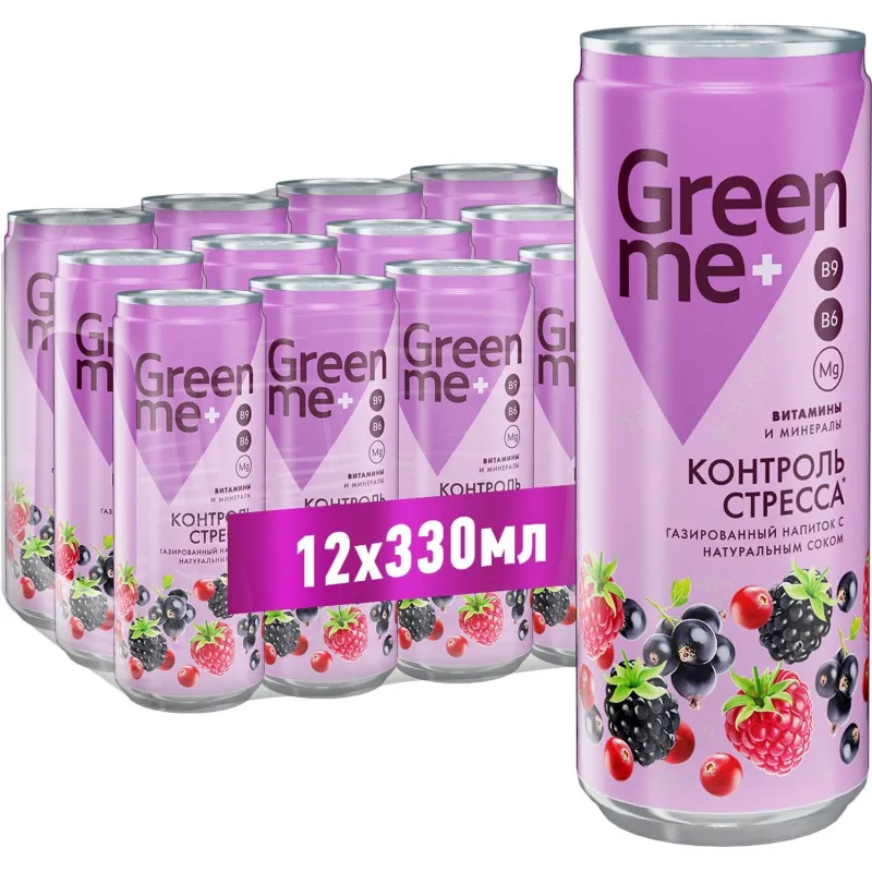 Вкусный напиток GreenMe plus Stress Control обогащенный полезными ингредиентами, помогающими справляться со стрессами. Содержит натуральные соки. Витамин B6 — способствует снижению тревожности.