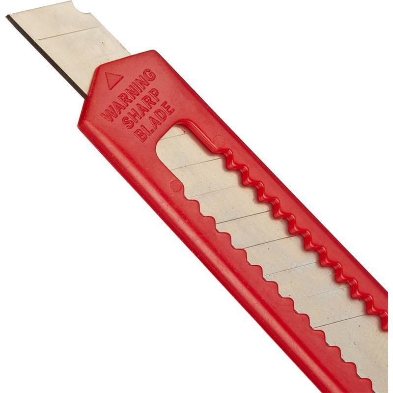 Модель универсального канцелярского ножа выполнена в ярком красном цвете, который делает его заметным и позволяет не потерять его среди мелких инструментов и бумаг.