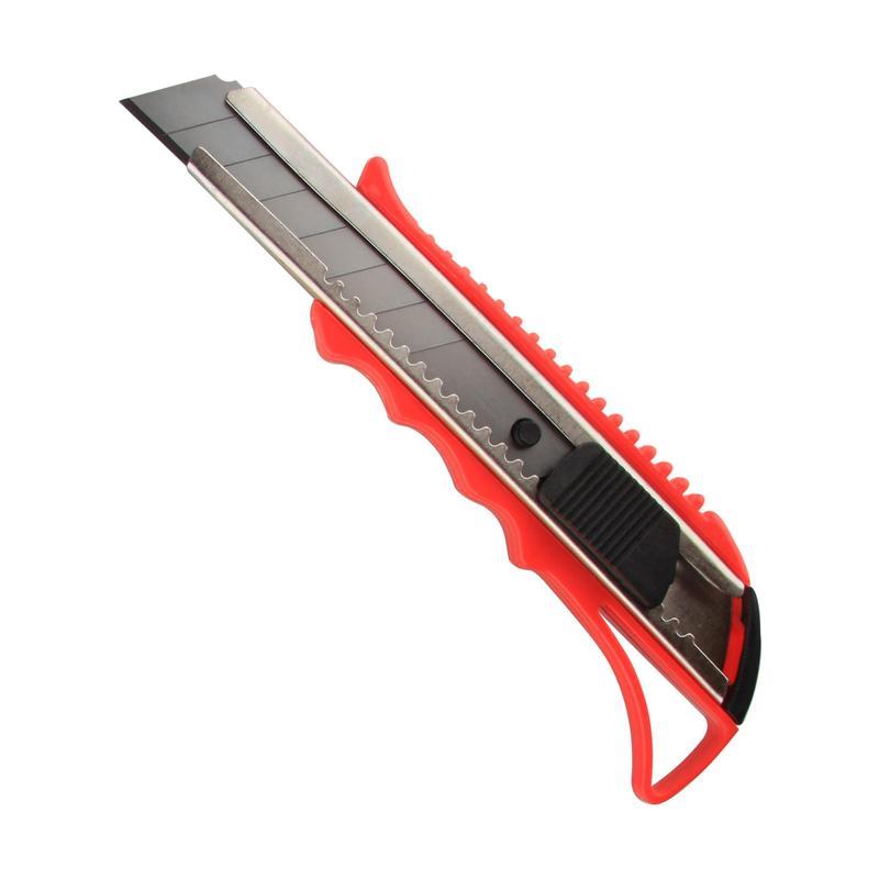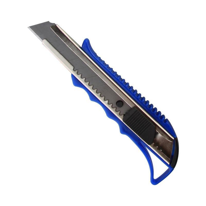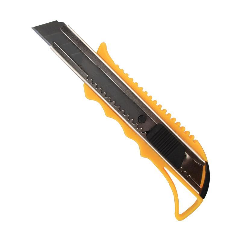 Нож канцелярский 18 мм Attache является простым в использовании, удобным и доступным инструментом. Активно используется в канцелярии. Корпус канцелярского ножа длиной 15,5 см выполнен из яркого пластика со вставкой черного цвета, система блокировки лезвий — защелка. Выдвижное сменное лезвие, шириной 18 мм, можно установить на любую удобную длину, заменить в случае необходимости. Металлические направляющие для лезвия увеличивают прочность ножа, создают дополнительную жесткость при разрезании плотных материалов. Нож оснащен эргономичной ребристой рукояткой для увеличения противоскользящих свойств. На рукоятке предусмотрено отверстие для подвешивания ножа при хранении. Данная модель ножа оптимальна для резки бумаги, распечатывания корреспонденции и посылок.