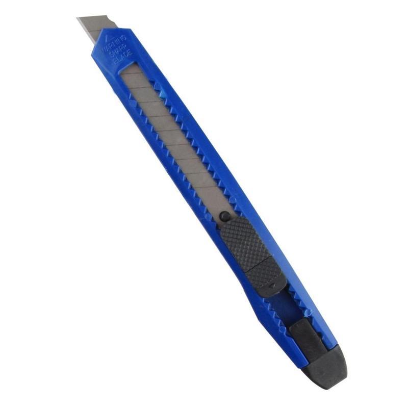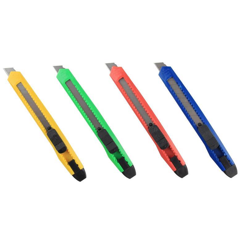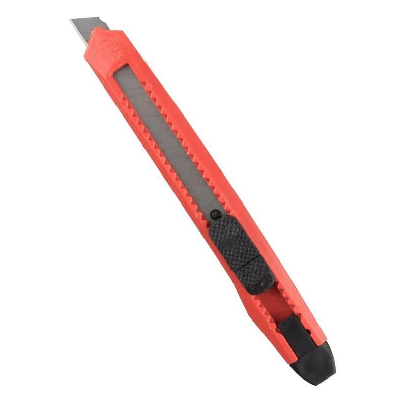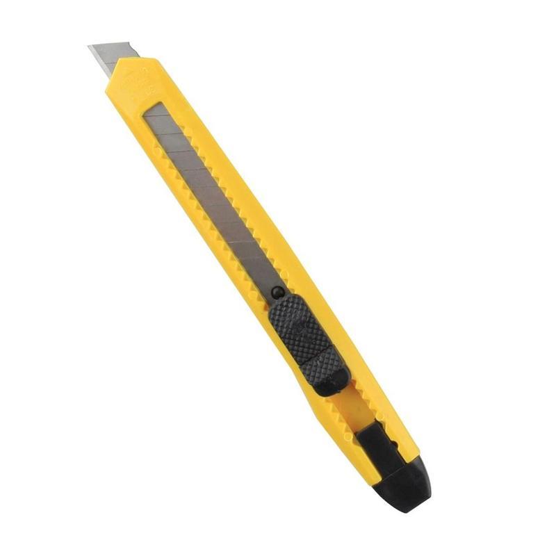 Канцелярский нож является простым в использовании, удобным и доступным инструментом. Активно используется в канцелярии. Корпус канцелярского ножа выполнен из экономичного пластика, система блокировки лезвий — защелка. Выдвижное сменное лезвие, шириной 9 мм, можно установить на любую удобную длину, заменить в случае необходимости. Данная экономичная модель ножа оптимальна для резки бумаги, распечатывания корреспонденции и посылок.