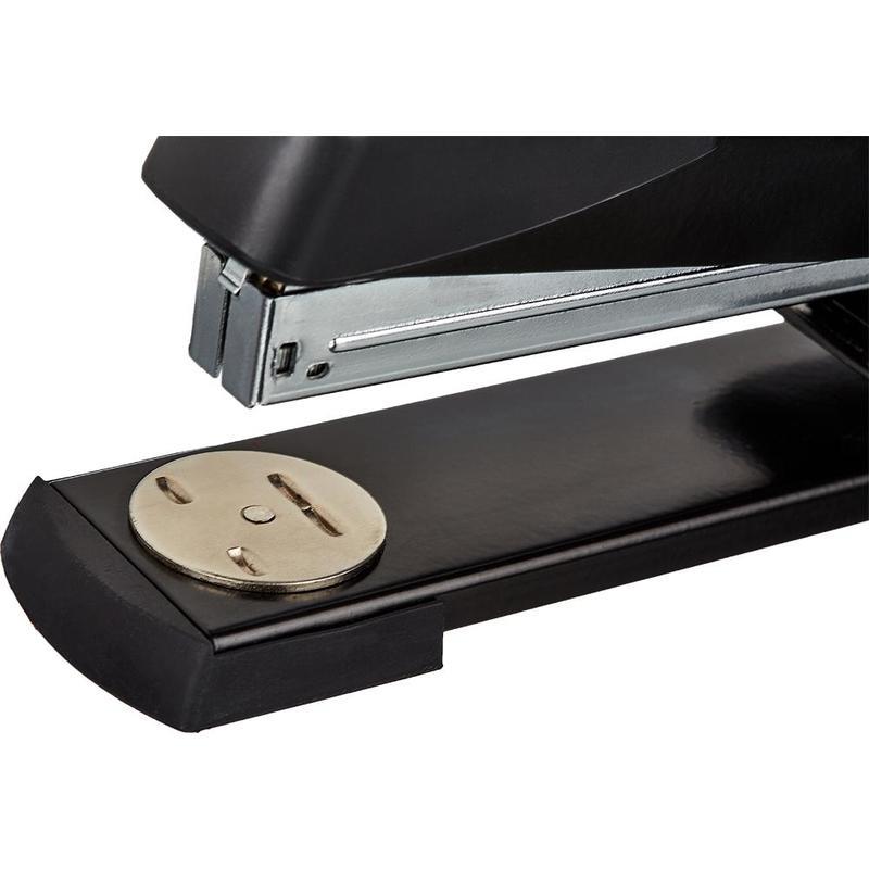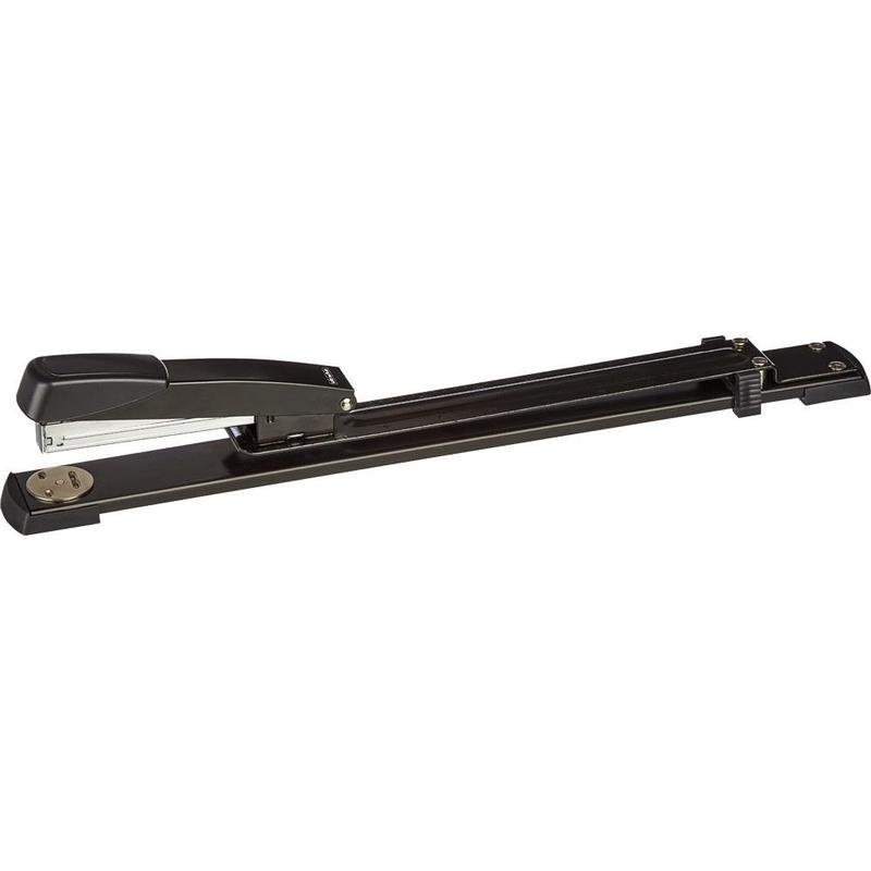 Степлер-брошюровщик Attache предназначен для скрепления крупноформатных документов. Металлический механизм позволяет сшивать открытым и закрытым способами документы толщиной до 25 листов, добавлять документы к готовым брошюрам и регулировать глубину закладки бумаги до 335 мм. Регулятор расстояния сшивания имеет двойную градацию шкалы (сантиметр, дюйм). Корпус выполнен из металла черного цвета. Рукоятка степлера имеет эргономичную пластиковую насадку. Степлер использует металлические скобы размеров № 24/6, 26/6. Вместимость скоб № 24/6 — 150 штук, 26/6 — 200 штук. Размер изделия 410x70x42 мм.