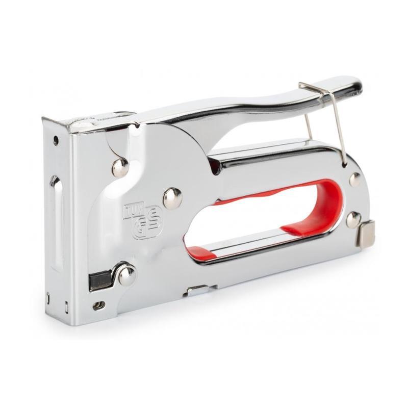 Мощный мебельный степлер для скоб тип 53 4-8 мм. Материал: холоднокатанная листовая сталь. Эргономичная рукоятка облегчает использование и делает захват более комфортным. Стальная конструкция корпуса делает степлер надежным и комфортным в использовании. Инструмент полностью отвечает требованиям стандартов GS (немецкий стандарт Geprufte Sicherheit), что говорит о его надежности и высоком качестве исполнения.