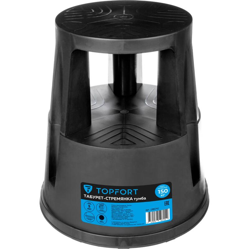 Полупрофессиональная приставная стремянка-табурет Topfort имеет две ступени, окрашена в черный цвет. Стремянка подходит для применения в торговых залах, на складах, в архивах и библиотеках, а также в быту. Ее можно легко перемещать при помощи роликов с мини-амортизаторами. Под нагрузкой платформа плотно прижимается к полу, что обеспечивает повышенную устойчивость.