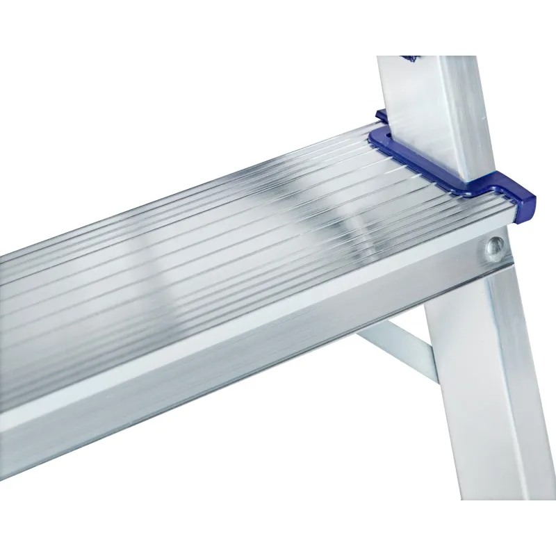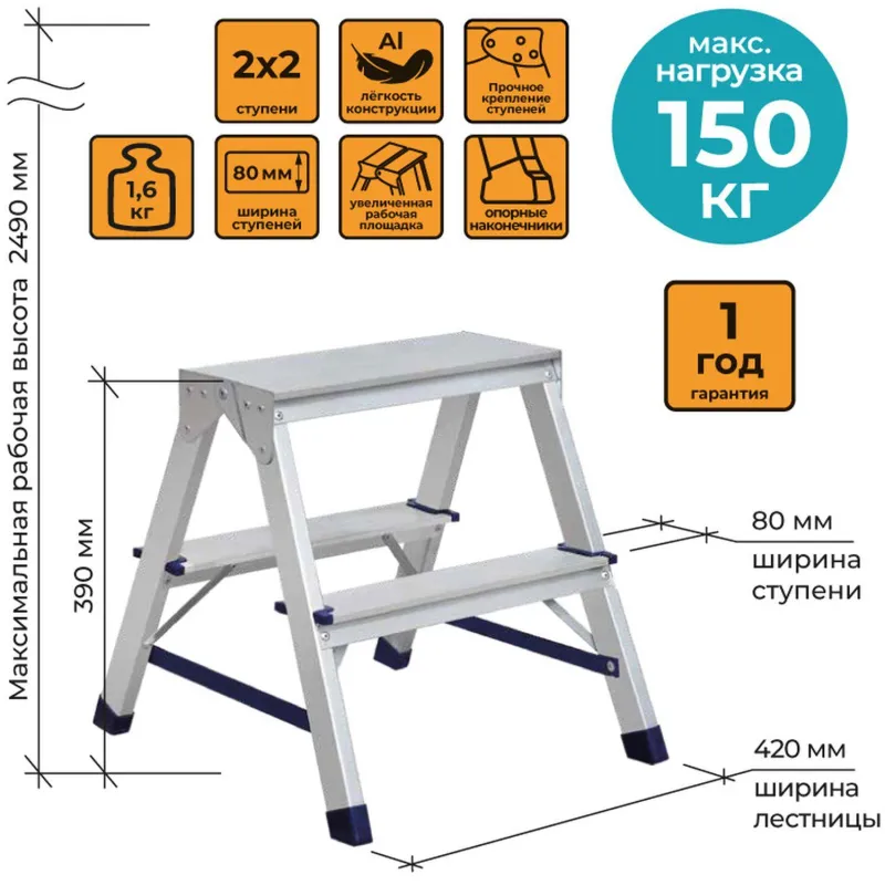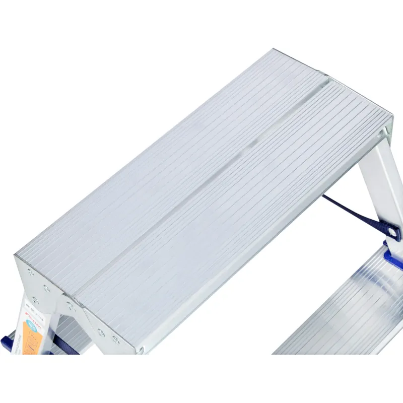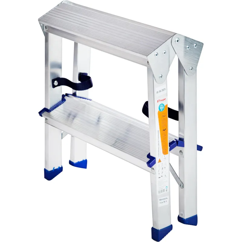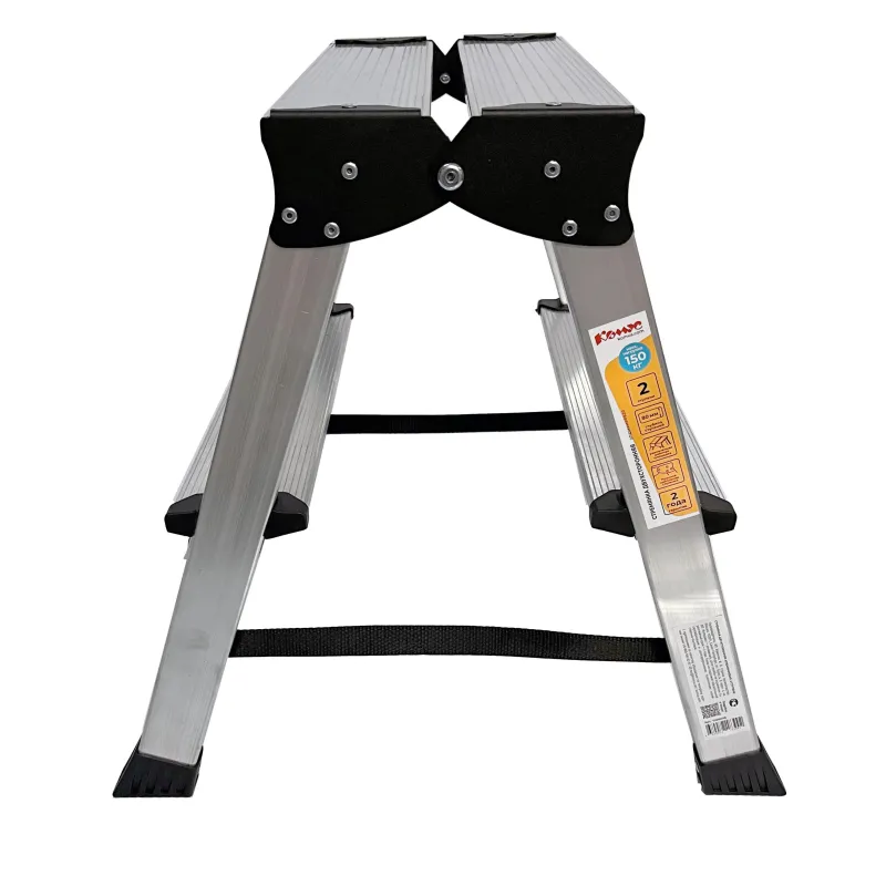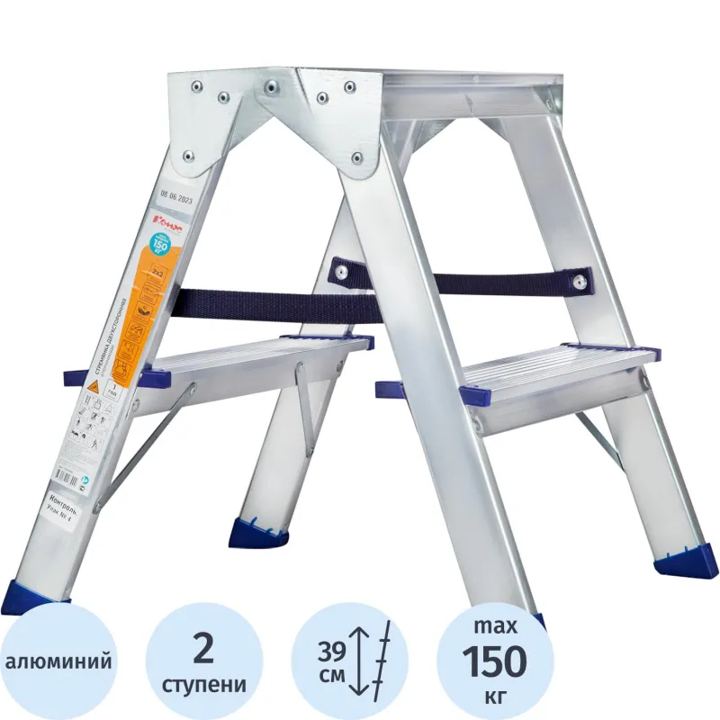 Двухсторонняя стремянка алюминиевая Комус с 2-мя ступенями. Прочное крепление ступеней к боковинам придает конструкции высокую жесткость. Профилированные, противоскользящие наконечники опор для защиты пола. Профессиональная серия. Усиленные стальные кронштейны и профиль толщиной 1,25 мм. Надежная фиксация при раскрывании за счет наличия страховочной стяжки из прочной ленты. Подходит для частого использования как в домашнем, так и в промышленном обиходе.Преимущества изделия:— Прочный алюминиевый каркас — облегченная конструкция, нержавеющая и долговечная— Дополнительная верхняя ступень (площадка)— Рифленая поверхность на ступенях предотвращает скольжение— Простота в обращении— Удобно хранить и транспортировать, благодаря компактным размерам Внешний вид и/или характеристики товара могут быть изменены производителем в соответствии с производственным процессом.