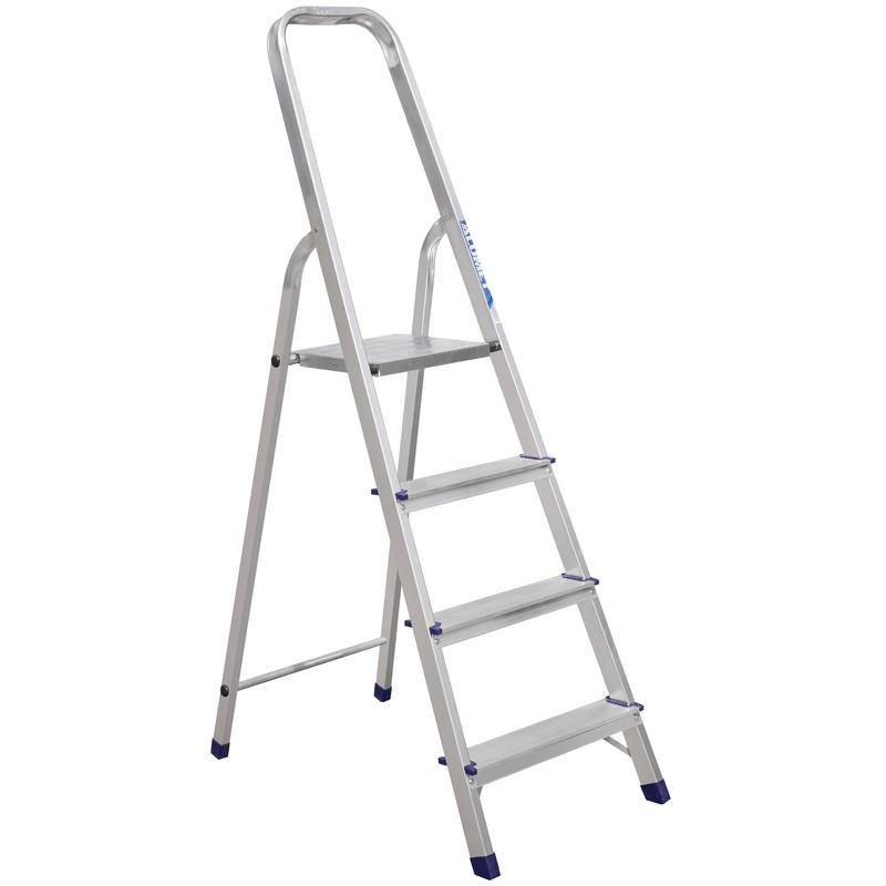 Стремянка Ам704 представляет собой свободностоящую переносную лестницу, сужающуюся к верху, имеющую сторону подъема (переднюю ногу), опорную сторону (заднюю ногу), рабочую площадку и раскладывающуюся для выполнения определенной задачи. Дуга безопасности конструктивно выполнена совместно со стороной подъема.Стремянка алюминиевая изготовлена из высокопрочного алюминиевого профиля. Задняя и передняя нога соединены между собой. Рабочая площадка выполнена из оцинкованной стали. Ступени имеют рифленую поверхность. Башмаки изготовлены из высокопрочного пластика. Стремянка в рабочем положении надежно фиксируется рабочей площадкой, а начиная с пятиступенчатой и выше страховочными ремнями. Количество ступеней от 3-х до 10-и. Стремянка алюминиевая серии АМ предназначена для проведения различных видов работ на высоте до 4 м как в быту, так и на производстве.Необходимо отметить, что производство стремянок удалась автоматизировать, что исключило влияние 'человеческого фактора' на качество продукции. При этом стремянки приобрели дополнительную прочность, возросла их надежность и долговечность.Внешний вид и/или характеристики товара могут быть изменены производителем в соответствии с производственным процессом.