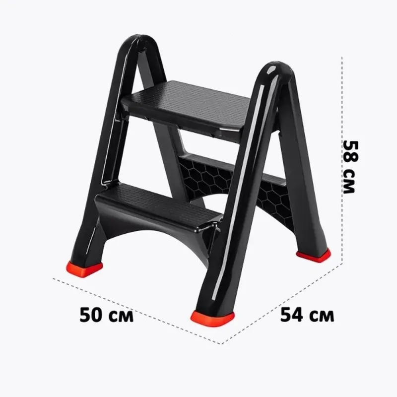 Стремянка высотой 58 см изготовлена из высококачественного пластика, который обеспечивает долговечность и прочность изделия. Этот материал не только лёгкий, но и устойчивый к воздействию окружающей среды, что позволяет использовать стремянку как в помещении, так и на открытом воздухе. Пластиковые элементы не подвержены коррозии и легко моются.