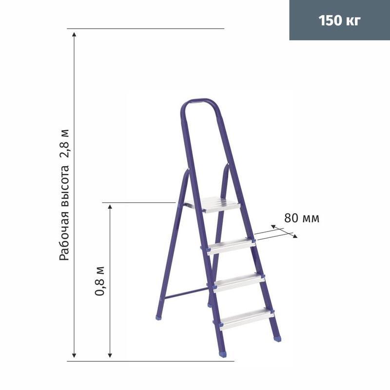 Стремянка стальная 4 ступени Сибртех 97844 может использоваться в быту и в профессиональной сфере. Обладает повышенной прочностью и надежностью. Благодаря пластиковым наконечникам, стремянка устойчива на рабочей поверхности и не царапает пол. Предусмотрена дуга безопасности.