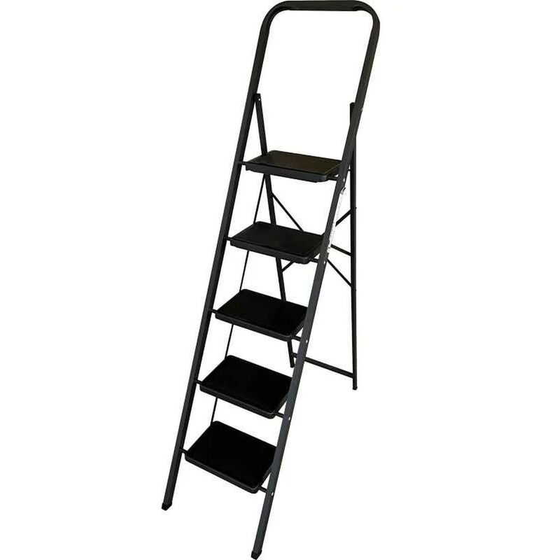 Стремянка стальная, 5 ступеней, МК 805С, Alumet. Стремянка стальная серий МКС предназначена для проведения различных видов работ на невысоких (до 3,3 м) высотах, как в домашних условиях, так и в производственной среде. Она представляет собой свободностоящую переносную лестницу, состоящую из стороны подъема (передней ноги) и опорной стороны (задней ноги), которые раскладываются для достижения необходимой высоты. Стремянка оборудована дугой безопасности, которая конструктивно соединена с передней ногой. Для изготовления стремянки используются прочные материалы: тетива передней ноги, задняя нога и ступени выполнены из стального профиля, защищенного от коррозии с помощью порошковой краски. Передняя и задняя ноги надежно соединены, а ступени обладают рифленой поверхностью, обеспечивая надежное сцепление. Модель серии МКС дополнительно оснащена противоскользящими накладками. Башмаки стремянки изготовлены из высокопрочного пластика, что добавляет устойчивости и безопасности при работе. Важно, чтобы стремянка была полностью раскрыта в рабочем положении, и верхняя ступень плотно соприкасалась с трубкой задней ноги. Внешний вид и/или характеристики товара могут быть изменены производителем в соответствии с производственным процессом.