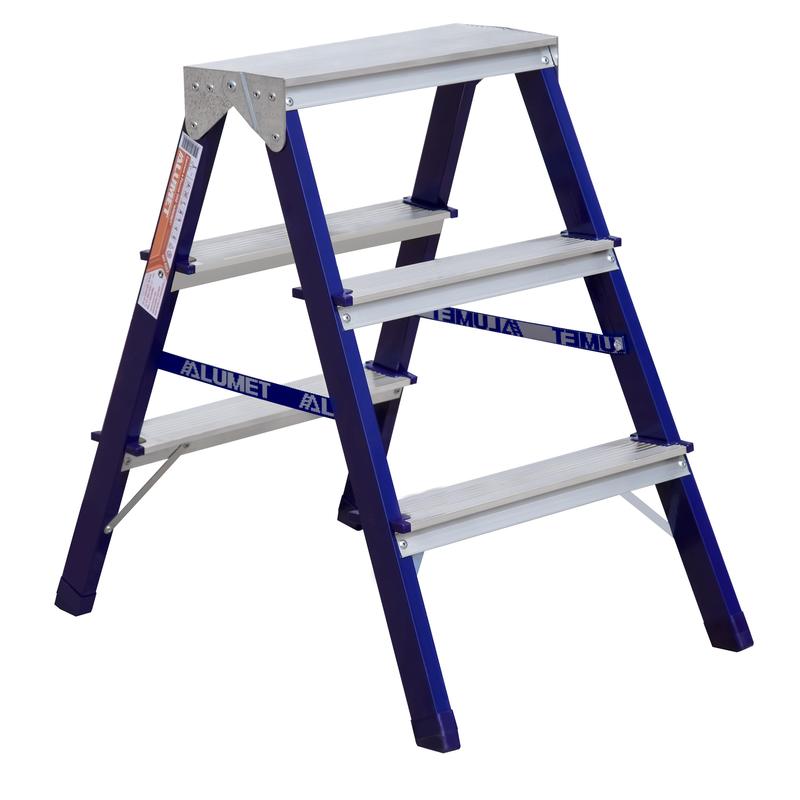 Двухсторонняя стремянка MD8203 представляет собой свободностоящую переносную лестницу, сужающуюся к верху, имеющую две стороны подъема и раскладывающуюся для выполнения определенной задачи. Верхняя рабочая площадка образуется только в рабочем положении из двух верхних ступенек двух составных частей стремянки.Стремянка фиксируется двумя страховочными ремнями. Тетивы стремянки изготовлены из прочного стального профиля, защищенного от коррозии эпоксидной порошковой эмалью. Ступени выполнены из высокопрочного алюминиевого профиля. Ступени имеют противоскользящую рифленую поверхность.Стремянка складывается и в транспортном положении занимает не много места.Стремянка стальная двухсторонняя серии МD предназначена для проведения различных видов работ на высоте до 3.5 м как в быту, так и на производстве.Необходимо отметить, что производство стремянок удалась автоматизировать, что исключило влияние 'человеческого фактора' на качество продукции. При этом стремянки приобрели дополнительную прочность, возросла их надежность и долговечность. Внешний вид и/или характеристики товара могут быть изменены производителем в соответствии с производственным процессом.