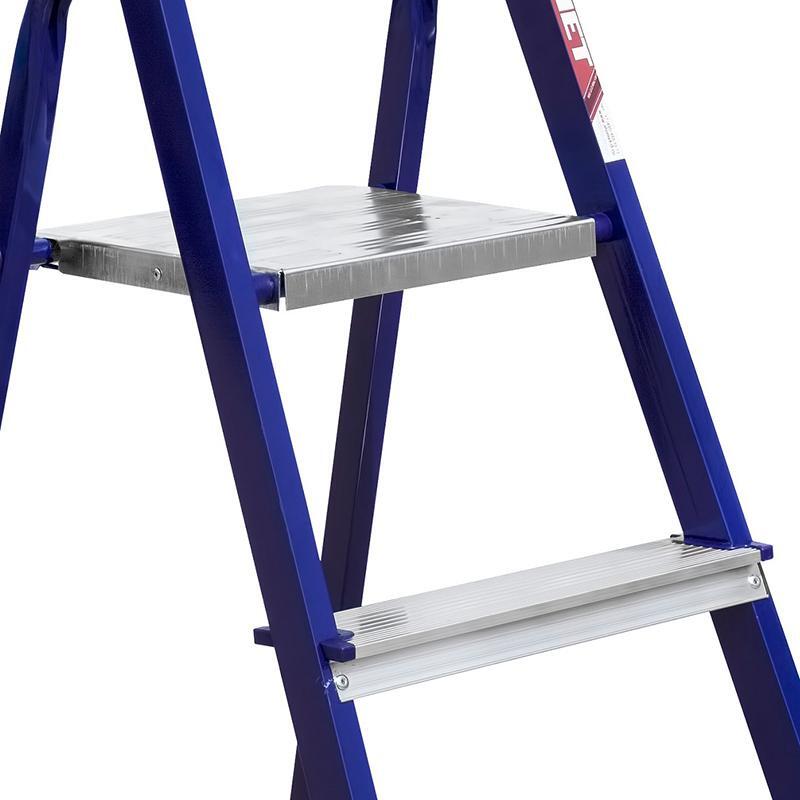 Стремянка 4 ступени «Алюмет» M8304 предназначена для проведения строительных, монтажных, ремонтных и других работ на производстве и в быту. Стремянка представляет собой переносную конструкцию, собранную из опорной и подъемной секций, а также рабочей площадки в верхней части изделия. Основу конструкции составляет окрашенный стальной профиль, ступени с рифленой поверхностью выполнены из алюминия, рабочая площадка — из оцинкованной стали.