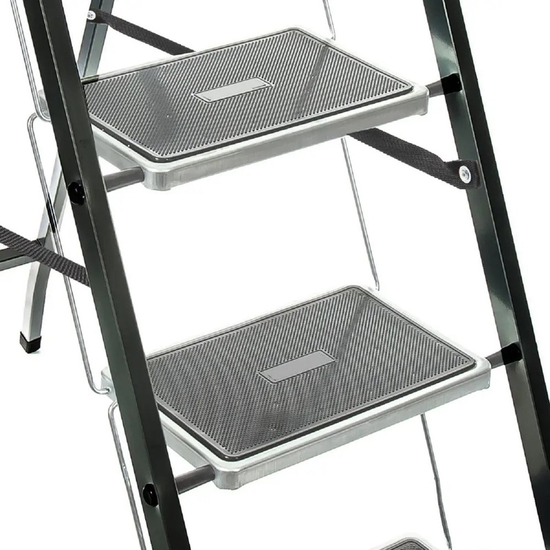 Стремянка стальная Zalger Jet Black 4 ступени (9920-4).Стальная 4-х ступенчатая стремянка для бытовых, ремонтных, строительно-монтажных, отделочных и садово-дачных работ серии Jet Black.Стремянка имеет порошково-полимерное покрытие-защита от коррозии.Ступени с противоскользящими ковриками, что обеспечивает дополнительную безопасность при работе со стремянкой.Размер ступеней: 30×20 см.Максимальная нагрузка: 120 кг.Максимальная достижимая высота: 2,91 м.Высота до верхней ступени: 91 см.Размер в открытом (разложенном) виде: 45,5×84×129 см.Вес: 6,69 кг.Цвет: угольно-черный.Внешний вид и/или характеристики товара могут быть изменены производителем в соответствии с производственным процессом.