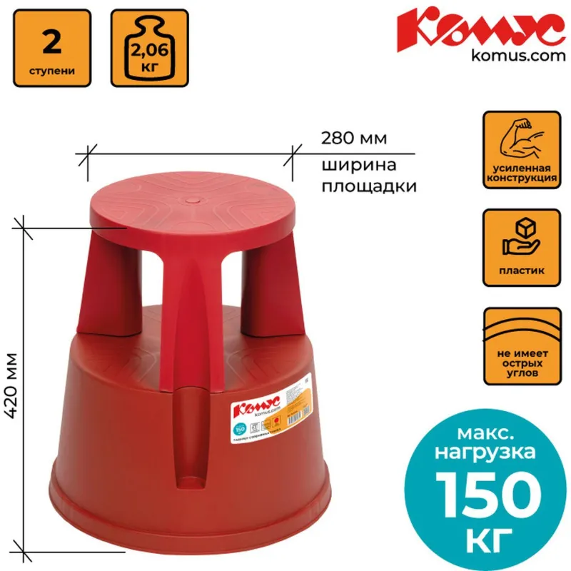 Стремянка-табурет пластиковая «Комус» с 2-мя ступенями. Подходит для использования в торговой сфере, на складе, архиве, библиотеке. За счет платформы на роликах, которые находятся на мини-амортизаторах, она легко катается, а при нагрузке плотно прижимается к полу и становится более устойчивой. Полупрофессиональная, приставная. Преимущества изделия: — Обладает прочной конструкцией, усиленной ребрами жесткости, благодаря чему надежна в эксплуатации. — Изготовлена из качественного пластика и не имеет острых углов. — Ролики позволяют свободно перемещать стремянку-табурет без нагрузки и прочно фиксировать под нагрузкой. — Резиновые вставки по периметру нижнего края гарантируют крепкое сцепление с полом. — Удобно хранить и транспортировать благодаря компактным размерам. Внешний вид и/или характеристики товара могут быть изменены производителем в соответствии с производственным процессом.
