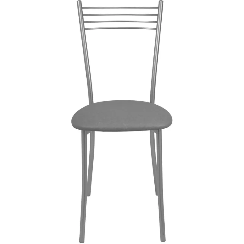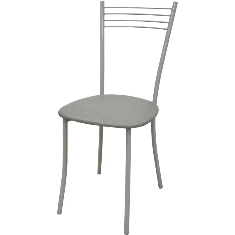 Стул обеденный Хлоя АС серый (искусственная кожа, металл)Функциональное и практичное решение для обустройства обеденной зоны в домашних условиях и заведениях общественного питания. Он выполнен в классическом дизайне и отличается простой конструкцией, подходящей для повседневного использования.Каркас представляет собой цельносварную металлическую основу с порошковым покрытием, которое защищает поверхность от механических повреждений и коррозии. Спинка выполнена из трёх горизонтальных металлических прутков и не имеет мягкой накладки, что делает изделие лёгким по внешнему восприятию и простым в уходе.Сиденье изготовлено из фанеры с поролоновым наполнением и обтянуто искусственной кожей. Этот материал устойчив к износу и легко очищается от загрязнений. Компактные размеры позволяют удобно размещать стулья в ограниченном пространстве.Максимальная статическая нагрузка составляет 110 кг. Внутренняя ширина сиденья — 390 мм, глубина — 400 мм, высота спинки — 440 мм. Модель не штабелируется.