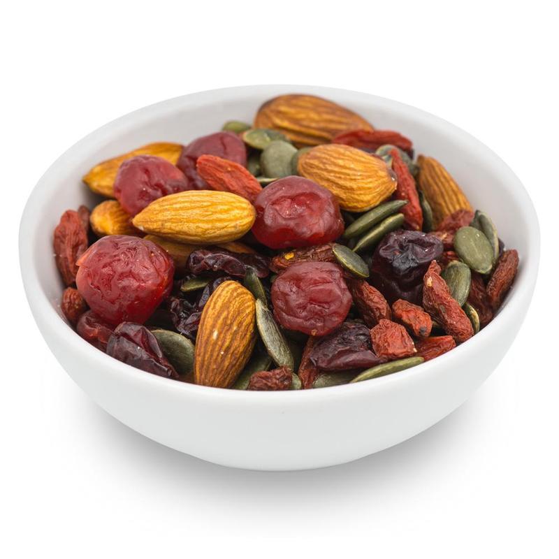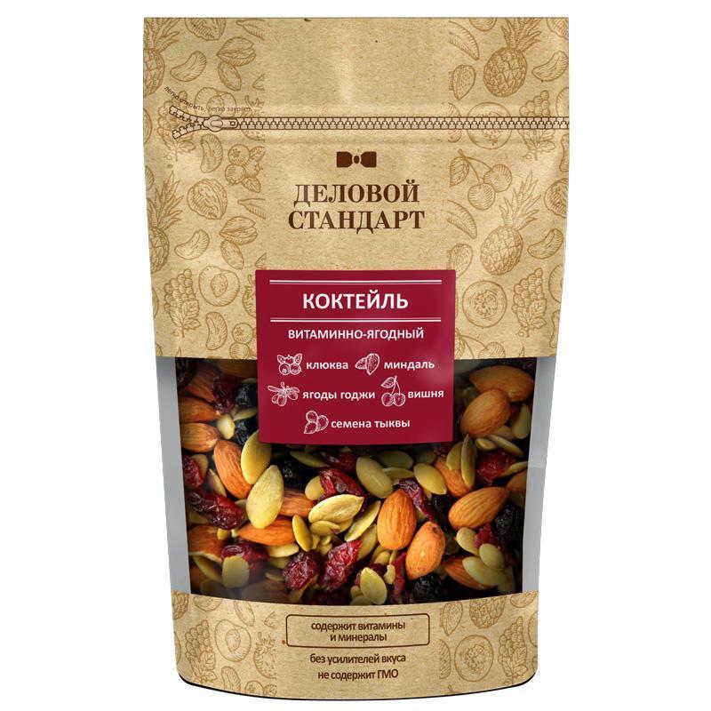 Коктейль витаминно-ягодный Деловой Стандарт улучшает работу мозга и полезен для иммунитета. В орехах есть вещества, положительно влияющие на нервную систему. Полезные свойства ягод годжи включают в себя низкое содержание калорий, отсутствие жиров, большое содержание клетчатки и антиоксидантов.