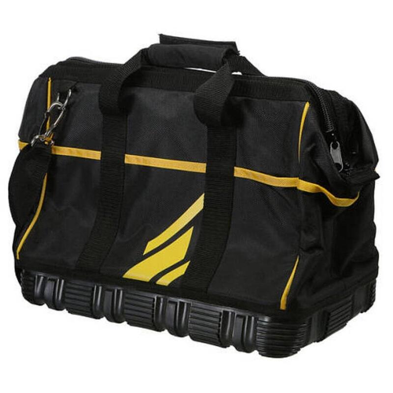 Съемная перегородка во внутреннем отделе сумки помогает зонировать пространство для инструмента, а так же сама снабжена карманами. Возможность ее снятия позволяет полностью контролировать эргономику хранения инструмента. Дно выполнено из пластика для защиты инструмента как от ударного внешнего воздействия, так и от возможного контакта с водой. Удобная скоба для хранения рулетки обеспечивает быстрый доступ к ней. Внешний вид и/или характеристики товара могут быть изменены производителем в соответствии с производственным процессом.