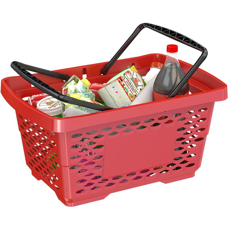 Корзина покупательская красная, с двумя ручками оптимальный вариант переносной корзины для совершения покупок в магазинах. Корпус корзины имеет увеличенный объем 28 литров для наполнения ее еще большим количеством товаров. Мелкая перфорация позволяет переносить мелкие товары без потерь. Эргономичные ручки делают ее использование максимально комфортным для покупателей. Корзина и ручки выполнены из высокопрочного пластика. Объем 28 литров. Изображения товаров на сайте не могут гарантировать точную цветопередачу.