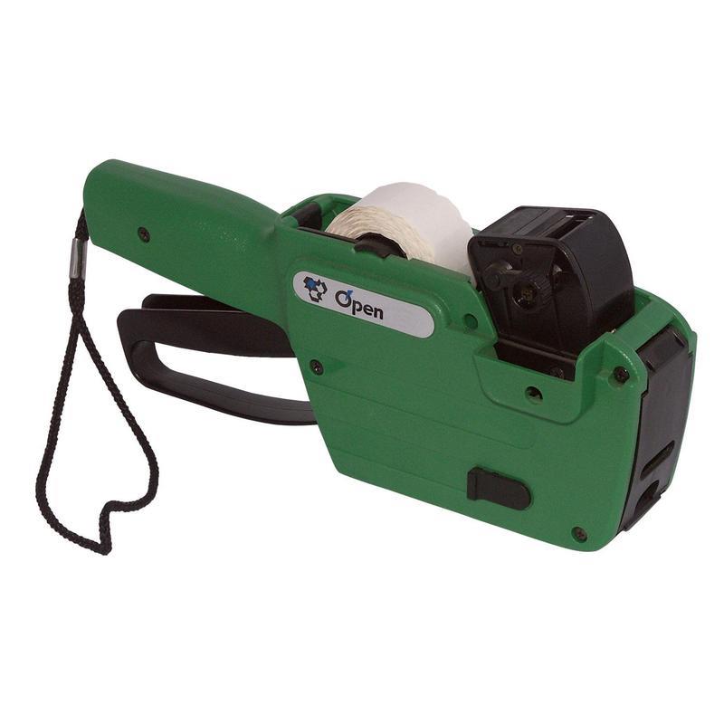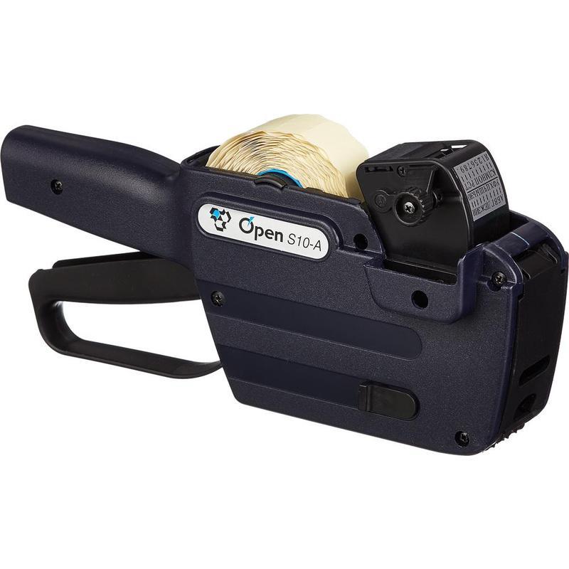 «Этикет-пистолет для печати в одну строку до 10 знаков с использованием кириллических символов и арабских цифр. Размер шрифта составляет 2,2 на 4,5 мм. Печать производится на этикетки размером 26 на 12 мм. Используется для проставления цены и артикула на товарах в розничной торговле. Имеет неограниченный срок хранения. В качестве расходных материалов можно использовать: