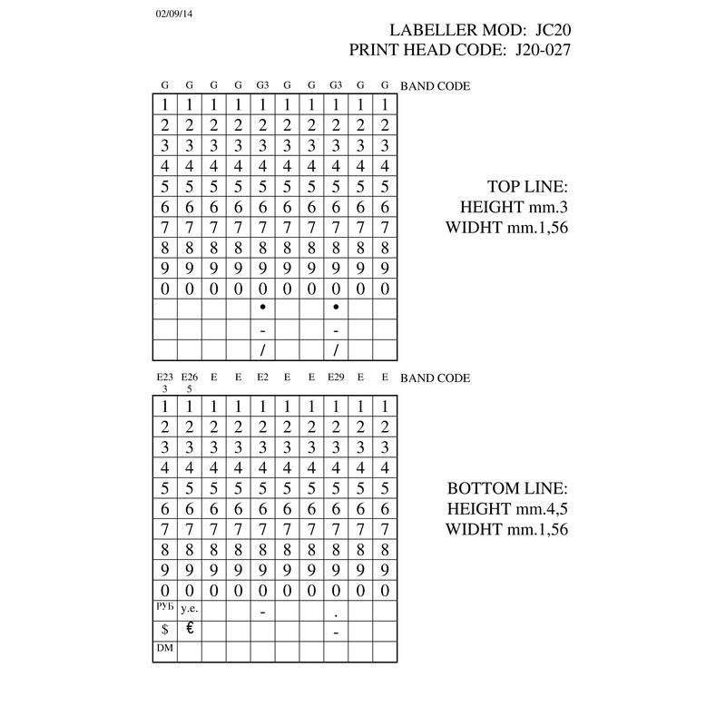 «Этикет-пистолет Jolly C20 с возможностью печати в две строки по 10 символов в каждой. Использует цифры и вспомогательные символы. В качестве первого символа может быть выставлен знак валюты или нижнее подчеркивание. В верхней строке размер шрифта составляет 1,56x3 мм, в нижней строке: 1,56x4,5 мм. Этикет-пистолет используется для печати на прямоугольных этикетках размером 26x16 мм.