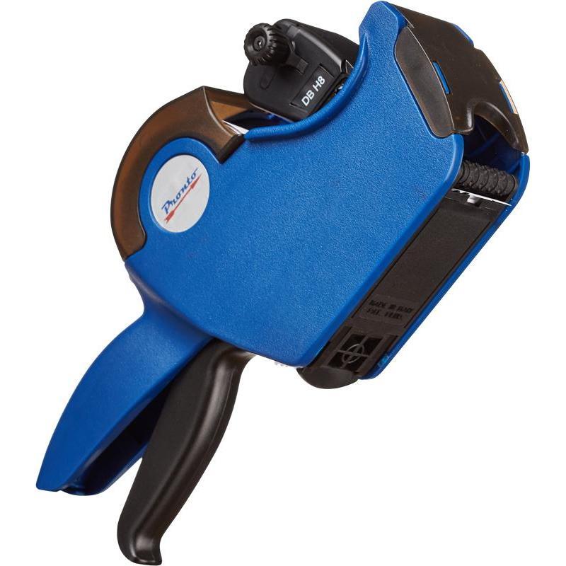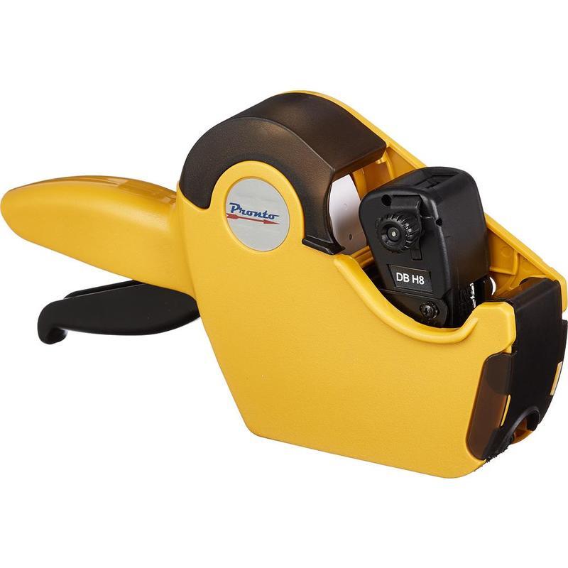 «Pronto H8: один из простых видовэтикет-пистолетов. Однострочный. В строке умещается 8 символов, что позволит напечатать на этикетке цену товара, состоящую из большого количества цифр. Пистолет удобен и практичен в использовании, прост в обслуживании. Этикет-пистолет оптимален для небольшого магазина или киоска. Печатает только цифры. В этикет-пистолете используется лента с прямоугольными этикетками размером 21x12 мм (поставляется без ленты). В комплекте один чернильный ролик (заряжен в пистолет).