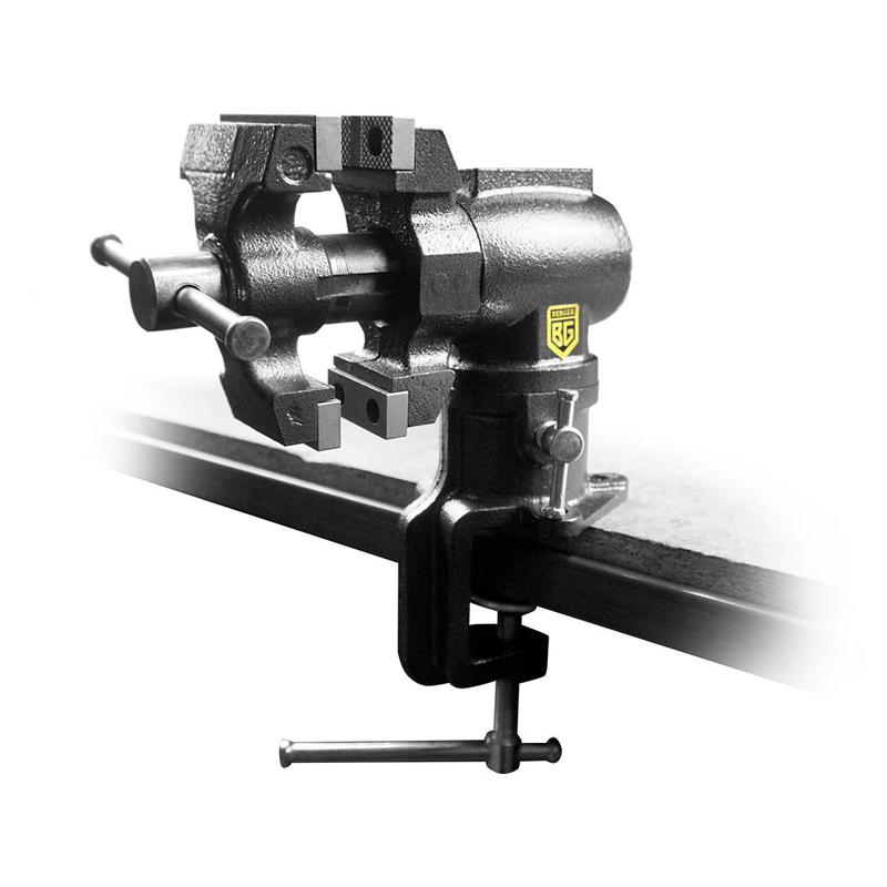 Тиски чугунные многофункциональные со струбциной 63мм BERGER (BG1341). Материал корпуса — серый чугун сочетает в себе демпфирующую способность, высокую износостойкость и противозадирные свойства. Материал губок — порошковая сталь — сменные губки с рифленой поверхностью. Функция поворота основания на 360 градусов, функция поворота зажимного рабочего блока на 360 градусов. Струбцина для крепления к верстаку — три отверстия для крепления к верстаку. Тиски оснащены наковальней.Вес: 3,4 кгГабариты тисков: 160×77×220 ммШирина губок: 63,5 ммТвердость губок: 40–45 HRCРабочий ход: 50 ммГлубина зажима: 35 ммСила зажима: 10 кН (1019 кгс)Диаметр основного винта: 12 ммРазмер наковальни: 51×22 мм. Внешний вид и/или характеристики товара могут быть изменены производителем в соответствии с производственным процессом.