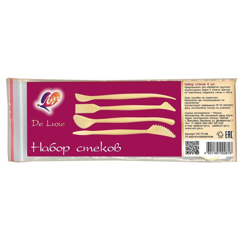 Набор стеков состоит из 4 предметов. Каждый стек имеет два рабочих конца различной конфигурации.