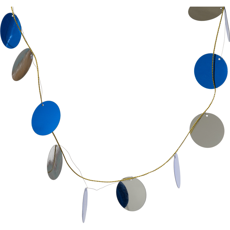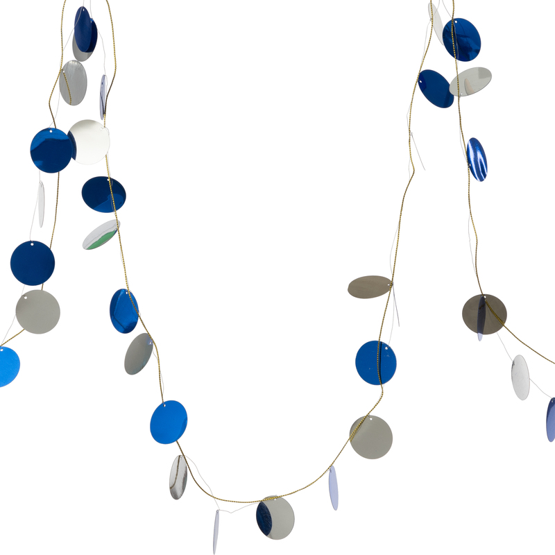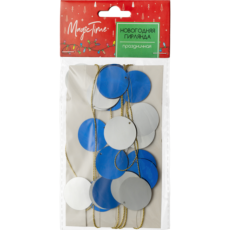 Гирлянда новогодняя Сине-серебряные кружочки из ПВХ / 200×3x3см 87156. Очаровательная новогодняя гирлянда послужит великолепным украшением вашей елки. Изящные круглые синие и серебряные диски, соединенные сияющими золотистыми нитями, будут сверкать и переливаться в свете рождественских огней. Благодаря плоской форме кружочками можно украсить стены и окна, рабочее место в офисе или стенд в школе. Волшебный подвес, наполненный праздничным настроением, создаст ощущение сказочной атмосферы. Эта рождественская покупка станет отличным дополнением вашей коллекции украшений.