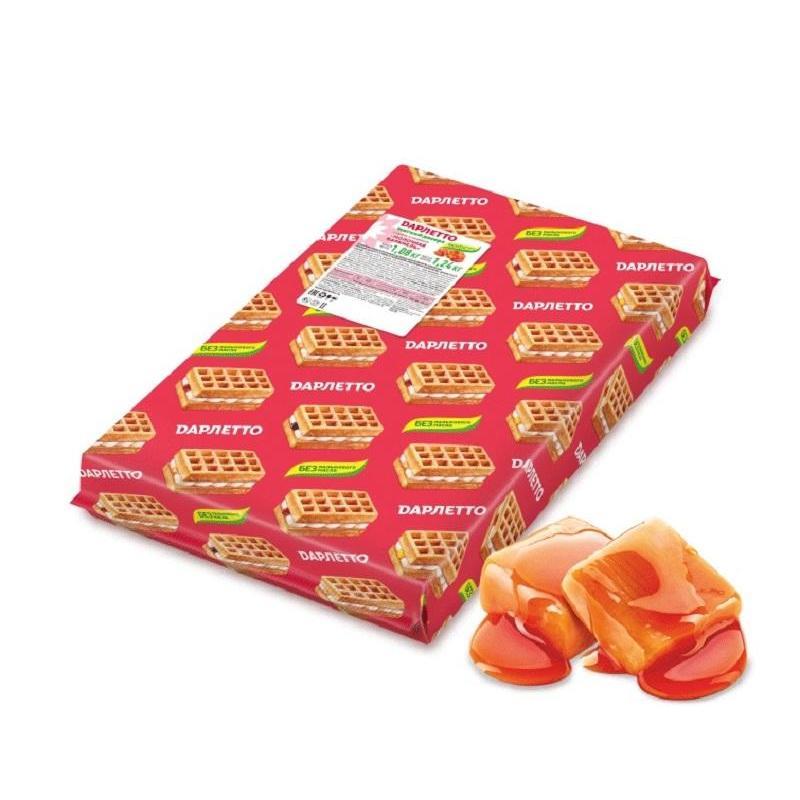 Состав: мука пшеничная хлебопекарная в/с (содержит глютен), сахар, продукты яичные (меланж), вода питьевая, масло подсолнечное высокоолеиновое рафинированное дезодорированное, патока, начинка «Молочная карамель» (сахар, вода питьевая, патока, заменитель молочного жира (рафинированные дезодорированные растительные масла в натуральном и модифицированном виде (подсолнечное масло, кокосовое масло, высокоолеиновое подсолнечное масло), антиокислитель —концентрат смеси токоферолов); влагоудерживающий агент — глицерин, молоко обезжиренное сухое, сыворотка молочная сухая, желирующий агент — агар, эмульгаторы: лецитин соевый, моно-и диглицериды жирных кислот; ароматизатор «Карамель», соль пищевая, регулятор кислотности—цитрат натрия, консервант—сорбиновая кислота); жир кондитерский (масло рафинированное дезодорированное, в том числе гидрогенизированное (подсолнечное)); продукт молочный сгущенный с сахаром ( сыворотка молочная концентрированная, сахар (сахароза, лактоза), молоко цельное); сыворотка молочная сухая, влагоудерживающий агент-глицерин, сироп глюкозный, соль пищевая, продукты яичные (белок яичный сухой), желирующий агент—агар, разрыхлители: гидрокарбонат аммония, гидрокарбонат натрия; ароматизатор «Ваниль», эмульгатор—лецитин соевый, консервант—сорбиновая кислота, регуляторы кислотности—молочная кислота, лимонная кислота; дрожжи хлебопекарные сушеные.
