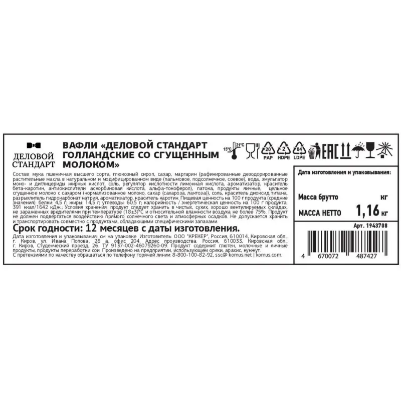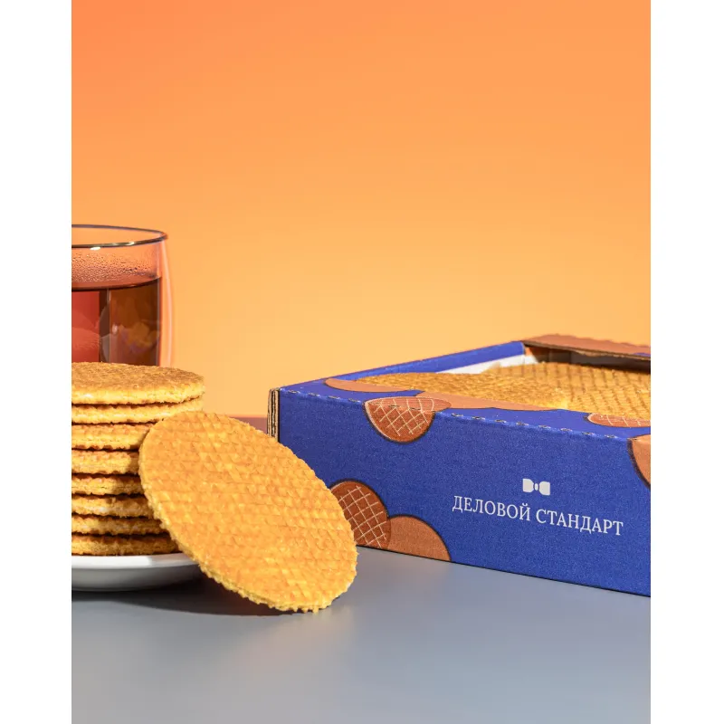 Вафли голландские Деловой стандарт с сиропной начинкой на основе сгущенного молока в ярком фирменном мини-экране. Отличаются нежным вкусом и насыщенным ароматом. Идеальны для чаепития, утреннего или вечернего перекуса.