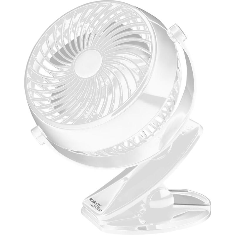 Настольный вентилятор Scarlett SC-DF111S98 будет незаменимыми помощником в жаркую погоду. Компактный размер и встроенный аккумулятор позволят брать прибор на природу, установить в автомобиле или же использовать в офисе и дома. Колесико регулировки скорости воздушного потока позволит подобрать комфортный режим, а возможность вращать вентилятор во всех плоскостях поможет настроить обдув. Устройство можно легко закрепить на любой горизонтальной или вертикальной поверхности с помощью прищепки или поставить на ножку.