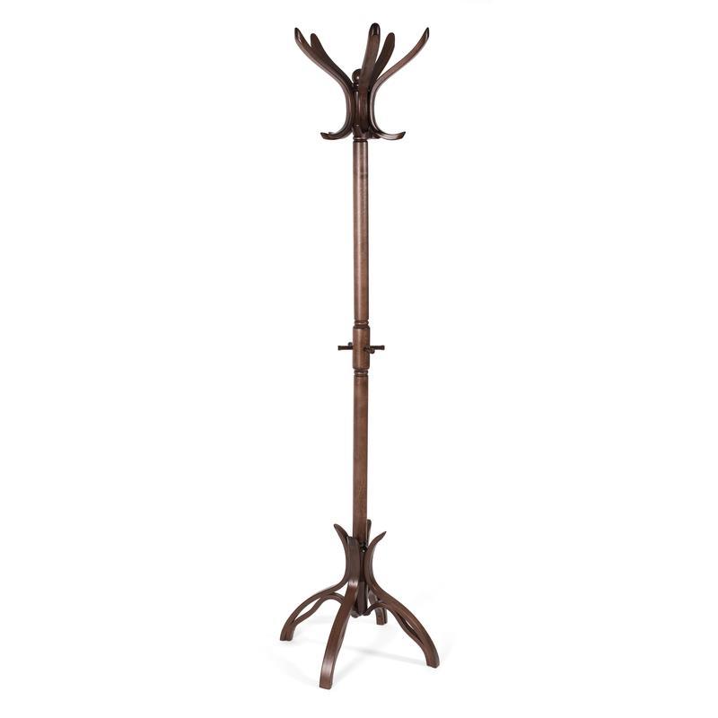 Вешалка напольная В-12Н изготовлена из массива дерева темно-коричневого цвета. Рассчитана на 5 персон. В верхней части расположены крючки и рожки для одежды и головных уборов, внизу есть держатели для сумок. Габаритные размеры вешалки (ШхГхВ): 500x500x1820 мм. Вес — 5.5 кг. Гарантийный срок — 12 месяцев.