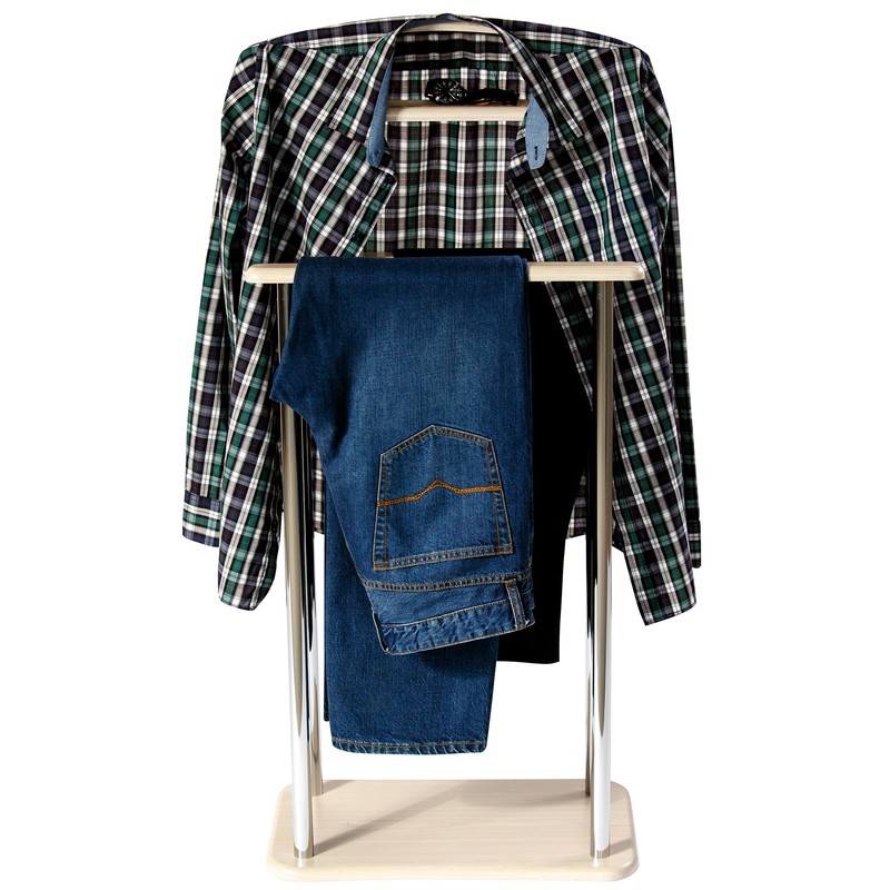 Костюмная вешалка Элдридж — современная и функциональная. Благодаря наличию двух планок для брюк и полочки для аксессуаров — данный вариант вешалки костюмной отлично подойдет для аккуратного хранения вещей. Вешалка выполнена из материала МДФ 16 мм в сочетании с хромированной трубой. Высота вешалки 1050 мм, ширина основания 295 мм, длина плечика 500 мм. Продукция поставляется в разобранном виде, упакованная в гофрокартон. В комплект входит вся необходимая фурнитура и удобная инструкция для сборки.Изображения товаров на сайте не могут гарантировать точную цветопередачу.