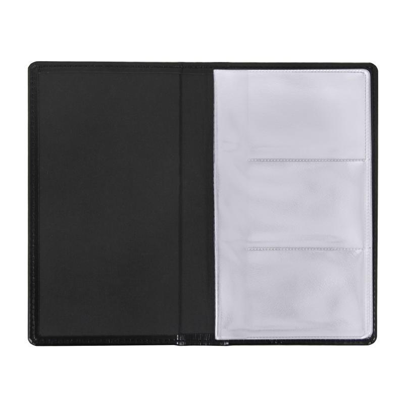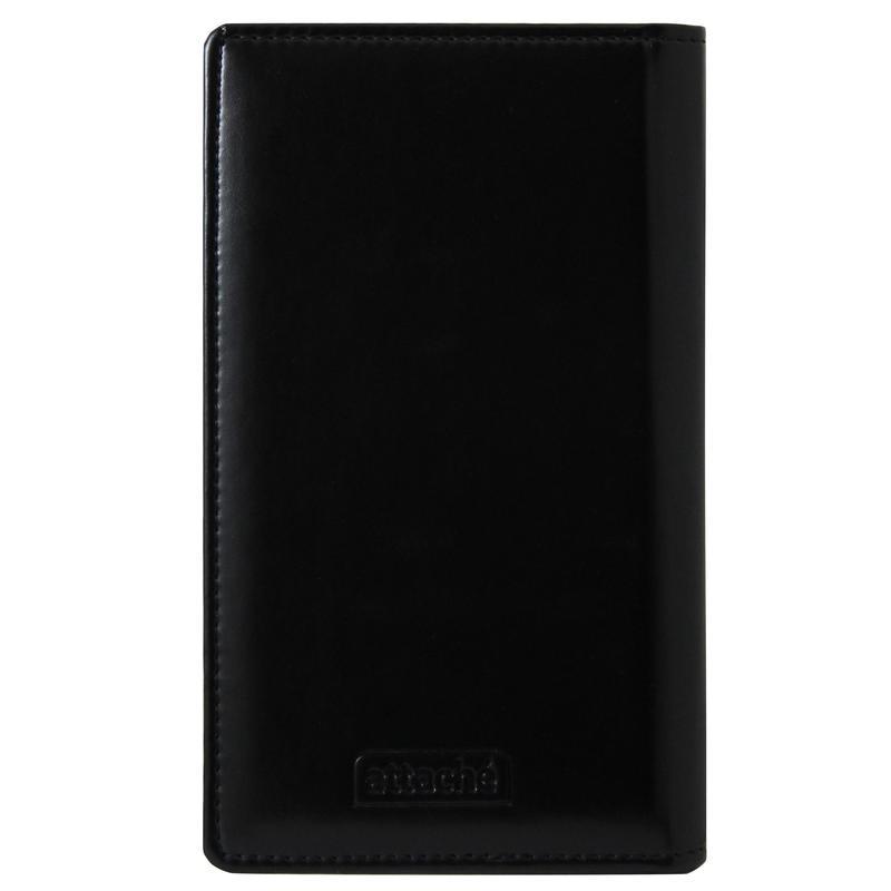 Вертикальная настольная визитница Attache из коллекции «Каньон» имеет строгую обложку из искусственной кожи черного цвета, размер — 110x200 мм. Внутренний блок рассчитан на 96 визиток. Карманы для визиток изготовлены из прозрачного полипропилена. Материал обложки подходит для всех видов полиграфического тиснения, имеет защитное покрытие от механических повреждений. Каждое отделение предполагает возможность хранения 2-х визиток.