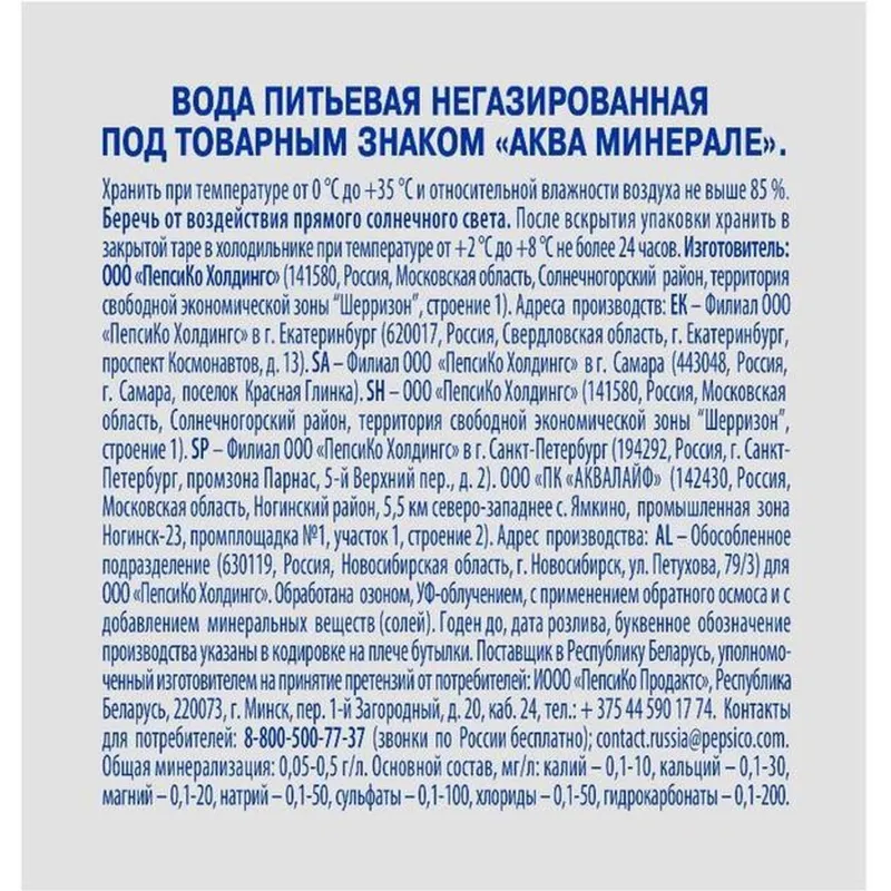 Вода питьевая Aqua Minerale негазированная 0.5 л рекомендована для ежедневного употребления.