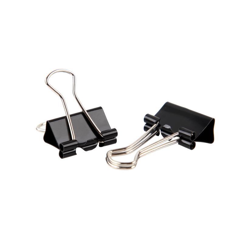 Металлические зажимы для бумаг Attache Economy черного цвета. Размер зажима: ширина 19 мм, высота 33,5 мм, глубина закладки 10,8 мм. Позволяет скреплять до 70 листов плотностью 80 г/кв.м, не деформируя при этом бумагу. Поставляются в упаковке из картона по 12 штук.