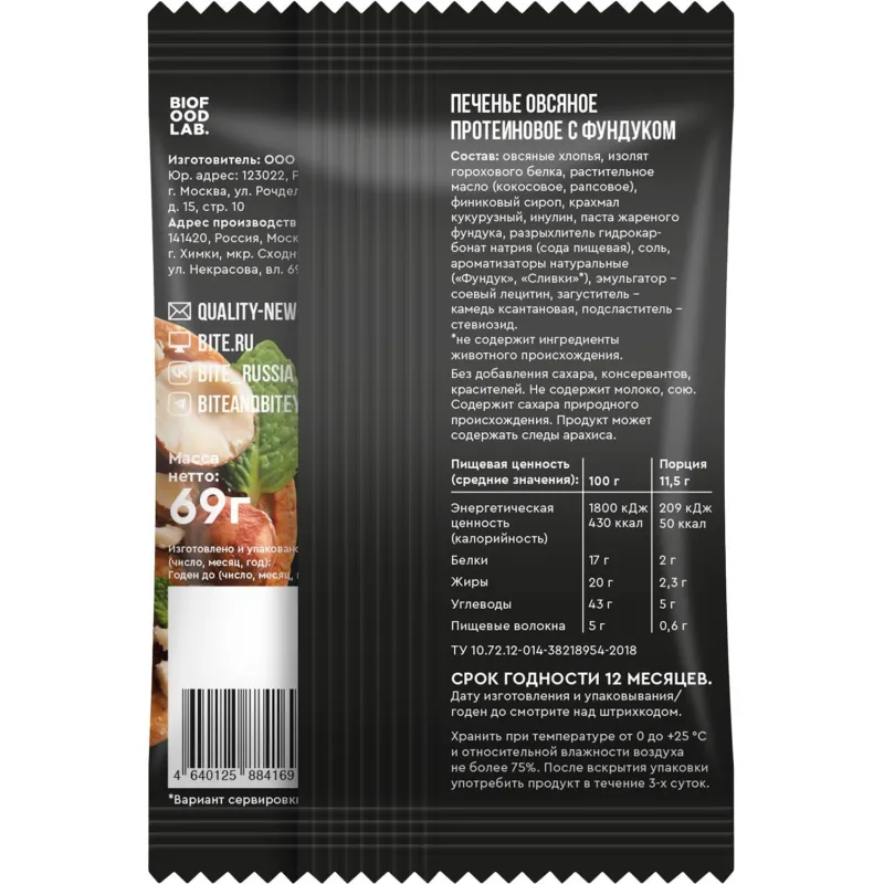 Печенье Bite овсяное протеиновое с фундуком — снек без сахара.