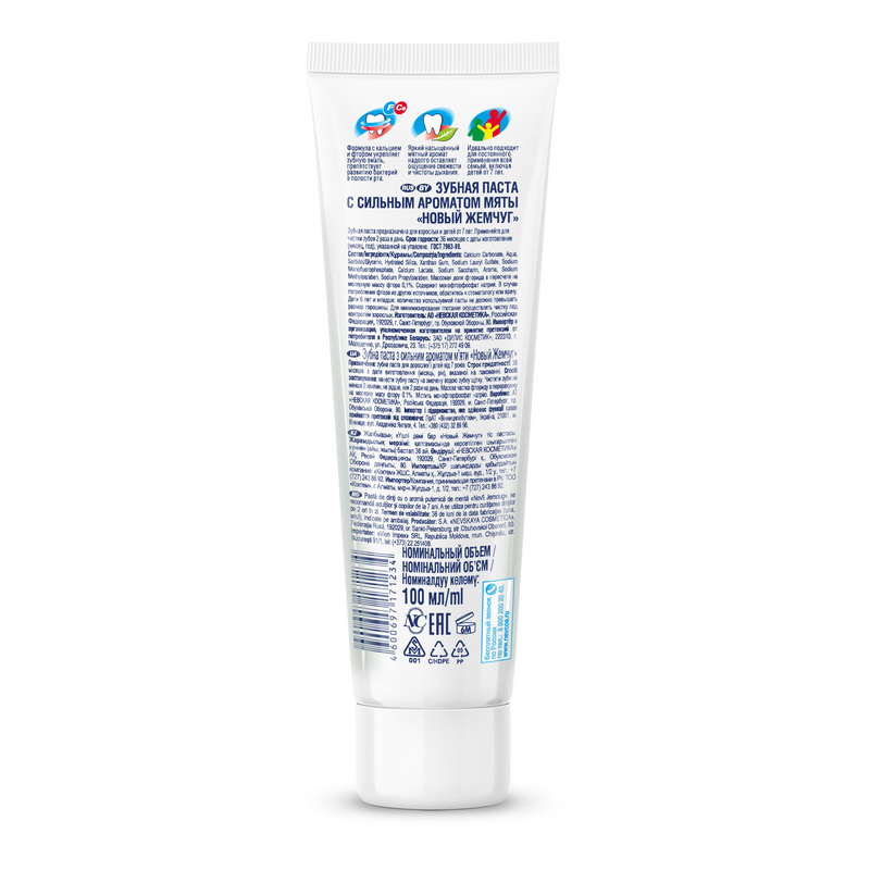 Предназначена для ухода за полостью рта взрослых и детей от 7 лет. Зубная паста содержит комплекс фтора с кальцием, который укрепляет структуру эмали зубов, способствует ее реминерализации и обеспечивает максимальную защиту от кариеса. Имеет яркий, насыщенный, освежающий мятный вкус. Состав: Calcium carbonate, aqua, sorbitol, hydrated silica, xanthan gum, sodium lauryl sulfate, aroma, sodium monofluorophosphate, sodium methylparaben, sodium saccharin, calcium citrate, sodium propylparaben.